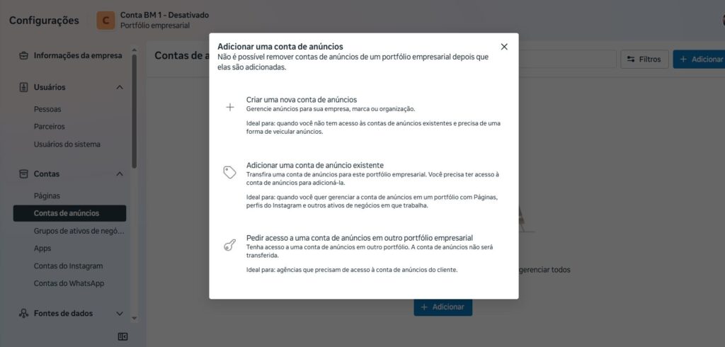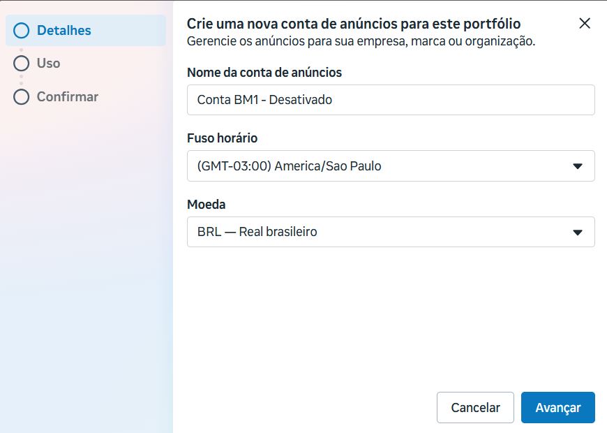 Selecione: “Criar uma nova conta de anúncios”