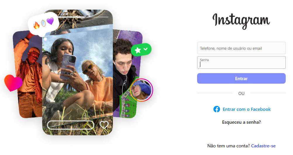 Caso já tenha um Instagram, não precisa criar outro. Apenas faça login.